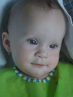 Eszünk is, most már mindenfélét, természetesen a korának megfelelőekből válogatva. Krumpli, répa és sütőtök a déli ebéd. A sütőtököt sütve nem, viszont párolva szereti. Gyümölcsök közül eddig az alma, őszibarack és a banán volt a palettán, meglátjuk, mivel bővül majd a lista. Nagyon szépen eszik, szinte teljesen maszat-mentesen. Nem kell utána takarítani, nem akarja mindenáron kiverni a kezemből a kanalat vagy a tálat. Néha énekelni kell neki közben (hogy-hogy nem, még mindig szereti a hangom!), de alapvetően gyönyörűen, békésen, a száját tátva kanalazza a falatokat.