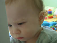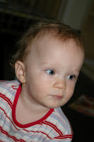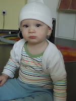 Nimród gyönyörűen fejlődik. 5.440 gramm és 61 cm. Kb. annyi, mint Odett volt 4 hónapos korában. Iszonyú erős és mozgékony, ebben teljesen hasonlít a nővérére. Külsőleg most már nem merném ezt ilyen kategorikusan kijelenteni. Persze van sok hasonlóság (szemük és hajuk színe), de míg Odett kerek képű volt csecsemőnek is, addig Nimródnak inkább hosszúkás feje van. A mosolyuk nagyon hasonlít és hát ezt is van lehetőség bőven látni, ugyanis Öcsibogyó is rendkívül jókedvű, mosolygós kisbaba.