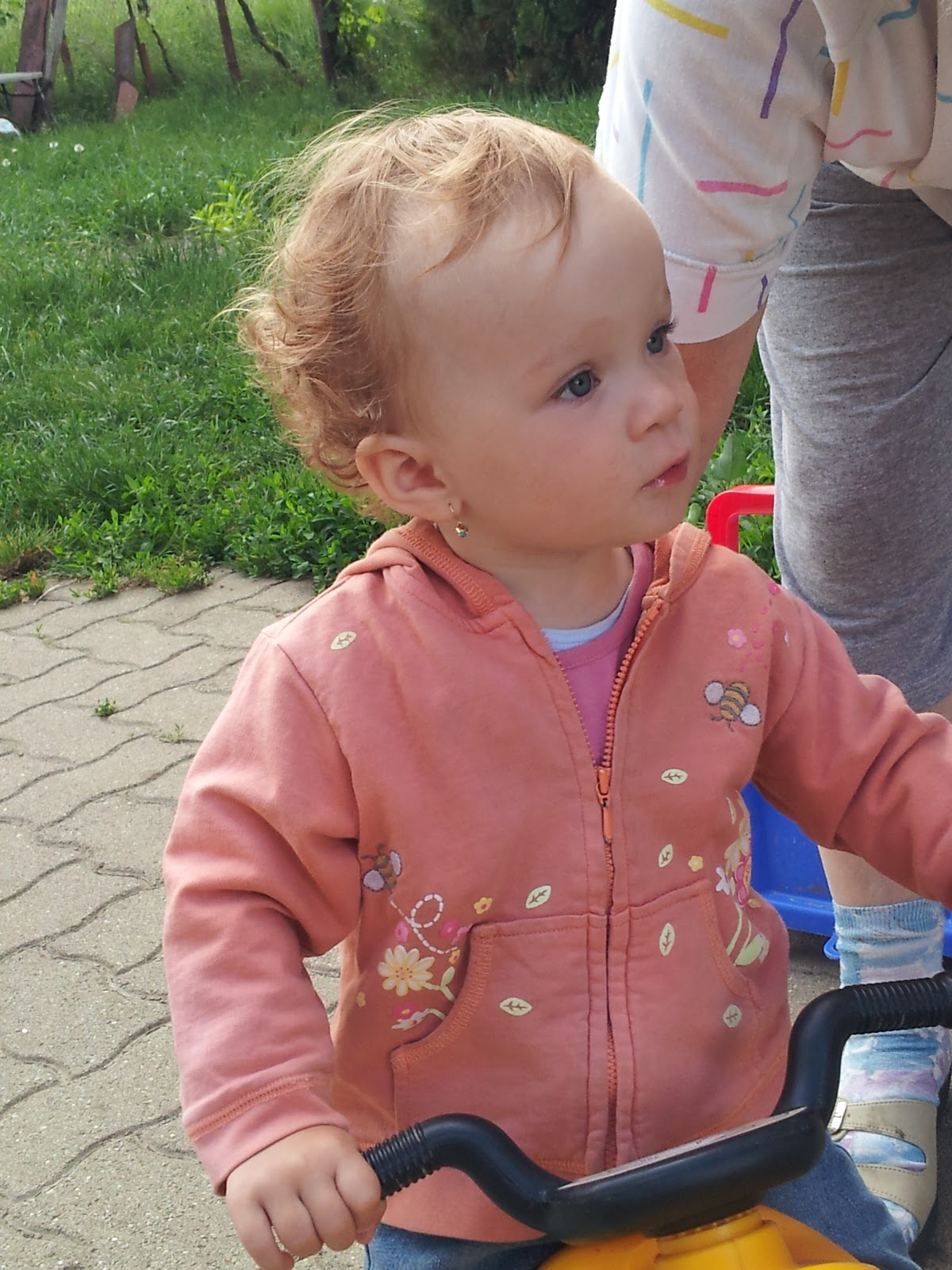 Odett változatlanul varázslatos. Másfél éves kora óta napról-napra bővül a szókincse. A már többször kiejtett szavakat is folyamatosan tökéletesíti, most már tisztán lehet érteni olykor, hogy mit mond. Persze ha beindul a sajátságos halandzsa nyelvén, akkor csak nézünk és figyelünk és aztán összemosolygunk, hogy mi lesz majd, ha tényleg érthetővé válik, amit mond. Mert hogy a szája az be nem áll, természetesen. A mozgása is szinte napról-napra változik. Eddig a táncolást a helyben pörgés jelentette, ami persze még továbbra is a repertoár része, de most már kibővült egy egyhelybenállós ide-oda billegős, közben rugózós, kezét elöl összefogós kombinációval. No és hát persze a hajcsavaróim! Valójában még sosem sikerült velük göndör fürtöket varázsolnom magamnak, de a lányom fantáziája által új értelmet nyertek. Pillanatnyilag ékszerként és virágként használjuk, erre teljesen tökéletes.